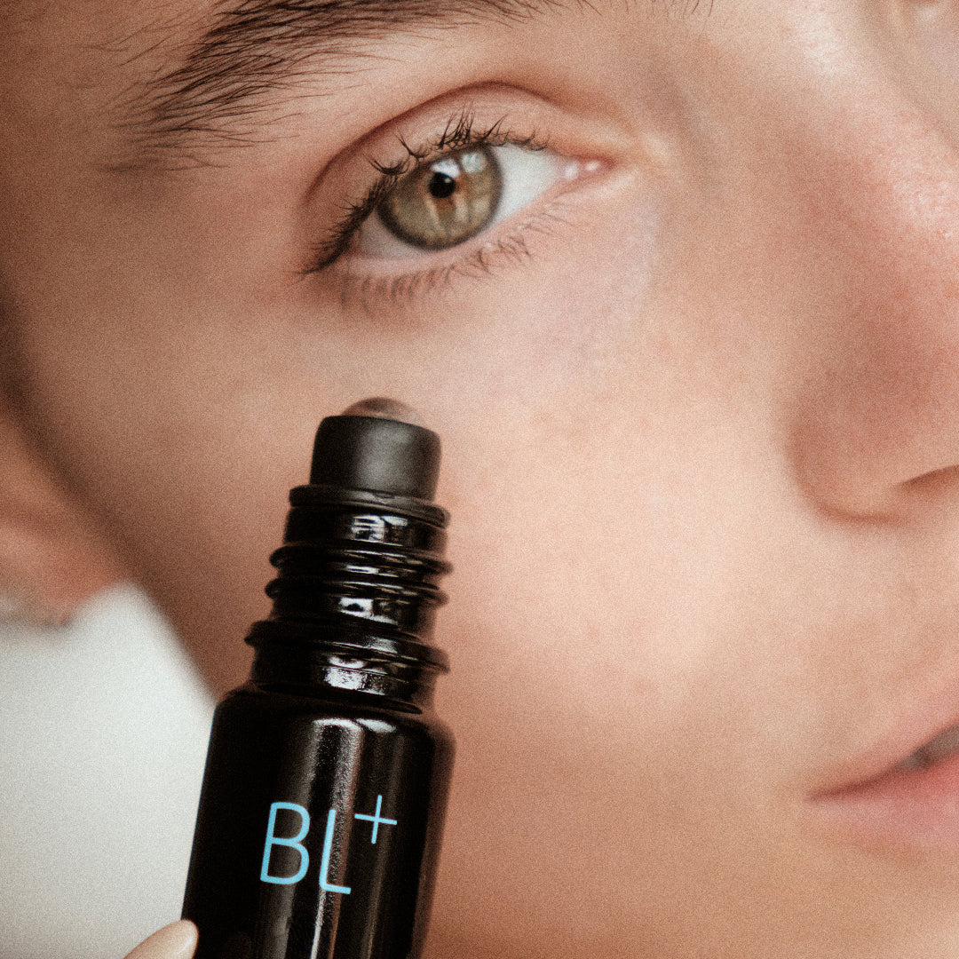 - Roll BL+ Eye Serum underneath the eye in a half-moon shape. Use morning and evening after cleansing.