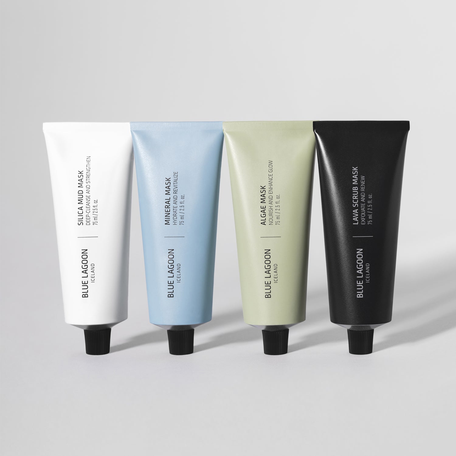 A limited-edition gift box of Blue Lagoon’s iconic bioactive face masks. The set contains: Silica Mud Mask, Algae Mask, Mineral Mask, and Lava Scrub Mask.