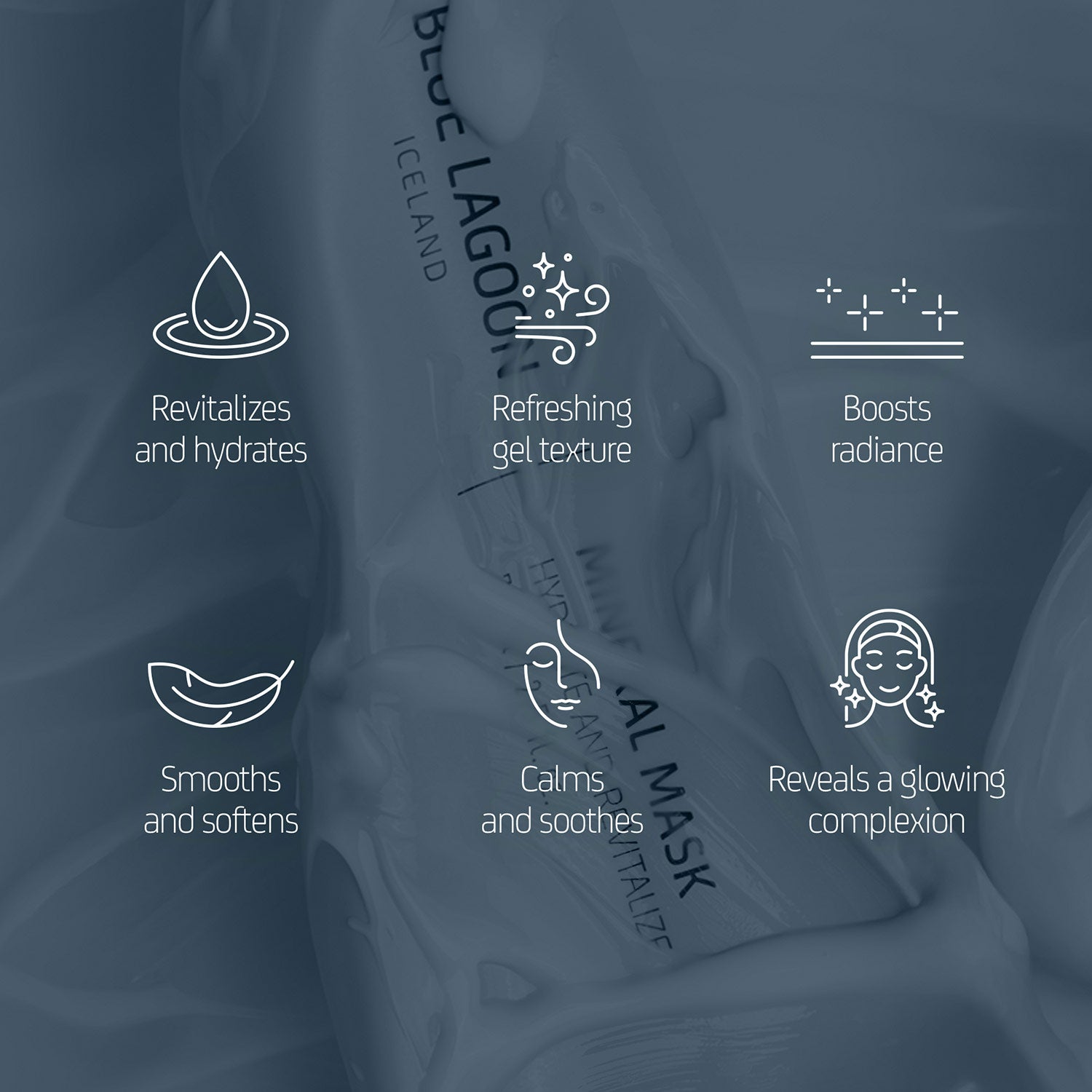 A hydrating face mask infused with the geothermal bioactive Blue Lagoon Seawater, rich in over 20 electrolytes that boost skin’s moisture level and revitalize the complexion.